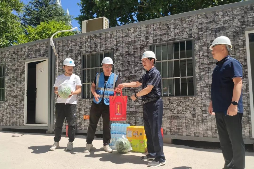 6月的三門峽驕陽似火、酷暑難耐,但持續(xù)的高溫沒能擋住文旅集團重點項目的有序推進,一線干部員工及工人頂烈日、冒酷暑持續(xù)奮戰(zhàn)在項目工地上。為切實做好防暑降溫工作,確保夏季安全生產(chǎn)工作的開展,6月28日,文旅集團黨委書記、董事長李軍民,黨委委員、副總經(jīng)理張建新帶隊開展夏日送清涼慰問活動。